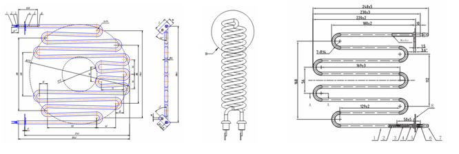1. Диаметр (мм) нагревателей